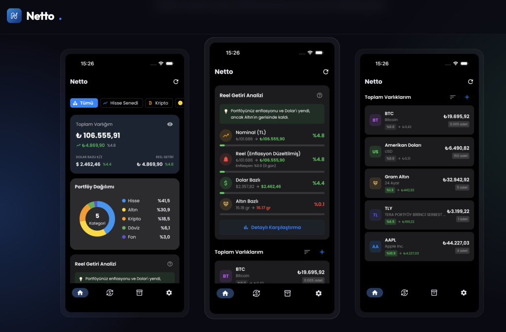 Netto has successfully transformed into a robust financial discipline tool that provides users with a complete view of their wealth in seconds. By consolidating liquid and non-liquid assets, we empowered users to track their true net worth and analyze performance across multiple currencies. The result is a secure, user-centric application that offers the transparency needed for long-term investment growth and financial freedom.